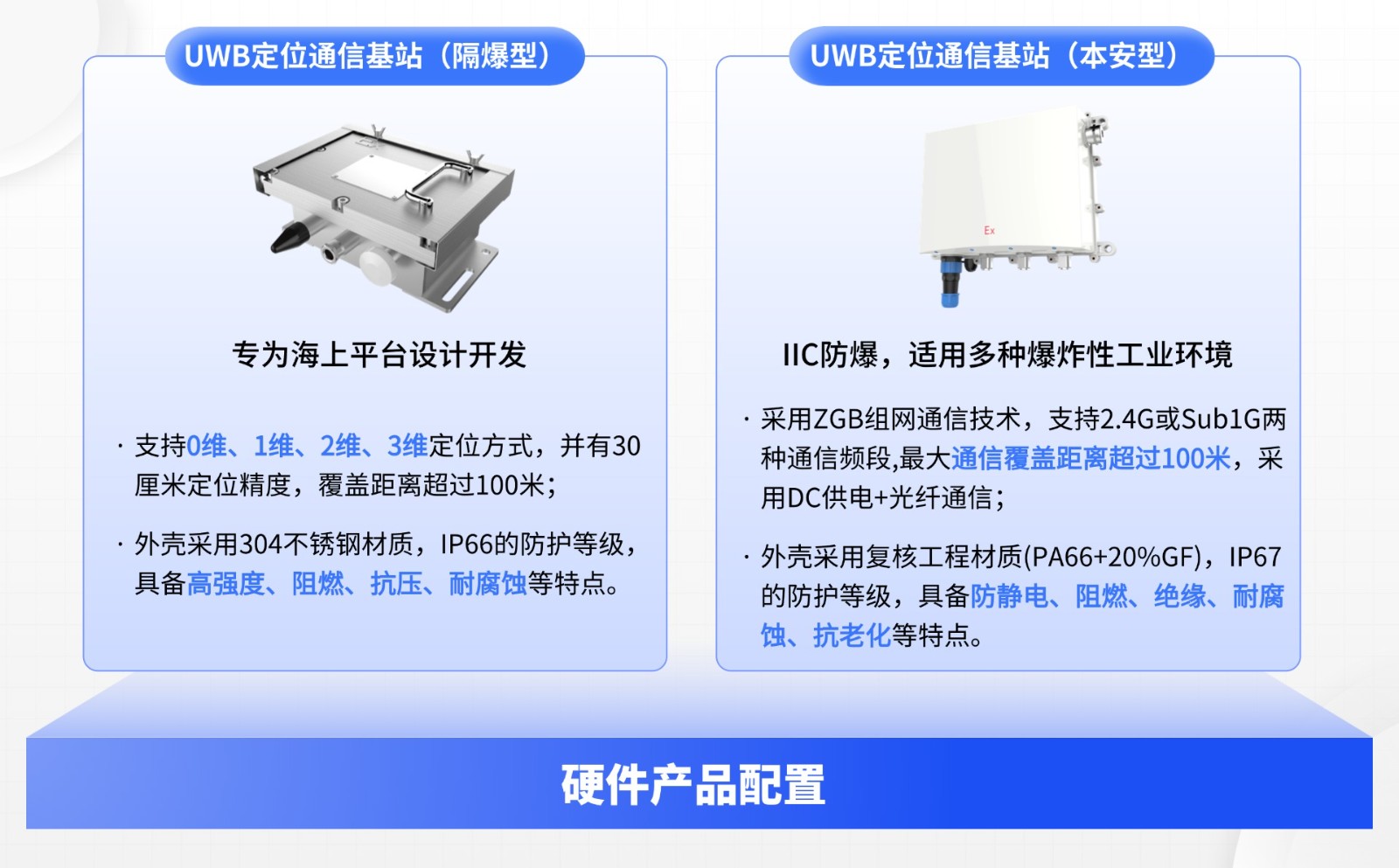 基站、信标与标签均采用防爆设计,其中隔爆型基站设备采用304不锈钢外壳设计,本安型基站均采用符合材料外壳,具备优异的抗盐雾防腐蚀性能,能有效抵御海上严苛环境的侵蚀。